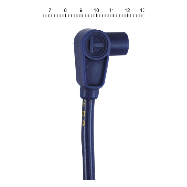 With 180° (straight) black plug boots. 24" wire length. Cut to length required. According to Taylor these are the best wires money can buy. They come with a 40 ohm/ft. ferrite spiral wound core, which is a low resistance blend of copper nickel alloy and is bonded by a conductive acrylic cover. Offers excellent RFI and EMI suppression and is compatible with use on most electronic ignition systems and components. The 10.4mm wires feature three layers of pure Zimplex silicone for 600° F heat protection. 102.000V dielectric strength with a tightly woven heat treated fiberglass braid. Wires come with gold lettering. Note: Available in 8.2mm and 10.4mm. The difference of the 10.4mm is the thickness of the insulation, the 10.4mm version is primarily designed for racing applications. Note: Some electronic ignition manufacturers do not recommend using spiral wound core cables. Check the instruction manual of your electronic ignition module for more information. When in doubt it is advised to use suppression core cables for electronic ignition set-ups. Note: If required, 90° (941256) and 180° (941257) coil boots & terminal connectors are separately available for 99-17 (Twin Cam) style coils.